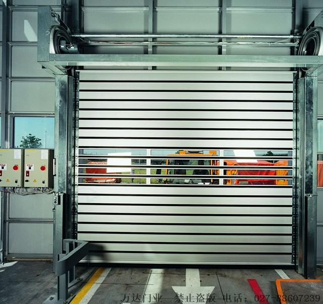 硬质叶集快速门具有可靠性、实用性、耐久性、易操作性以及低 廉的维修费用和 低噪 音等性能。在工业应用中,每年正常无故障动作可达15万次以上。门板条为双层结构,可以抵抗强风和暴风雨及大雪的侵袭。根据需要,还可以将隔热铝制板条和透明的板条组合安装起来。板条在卷起时相互无接触,这样可以保持板条常年无变形、无磨损。另外板条之间也没有直接连接, 它们的两端是和可以卷绕的钢带螺接在一起,各板条之间用密封胶条连接,这样既可以节省空间,又可以保证门帘不变形,而且板条的更换也非常简单、快捷。